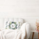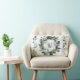 Add a touch of elegance to your home decor with this modern rustic inspired throw pillow. The design features a watercolor botanical wreath in shades of teal, sage green and olive green on a background of white and gray faux weathered wood. In the center is a monogrammed initial accented by a flourish and family name below for you to personalize in black typography. From our hearts to yours, enjoy!