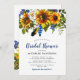 Rustic Watercolor Navy Sunflower Bridal Shower Invitation