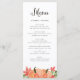 Add a festive fall accent to your event tablescape with this customizable menu card. It features watercolor orange pumpkins, maple leaves and greenery. Personalize this fall wedding menu card by adding your own details. This pumpkin menu card is perfect for fall weddings, bridal showers, baby showers, and so much more.