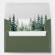 Elegant stylish rustic modern forest green wedding invitation envelope with watercolor evergreen trees landscape liner and personalized script sender return address.