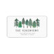 These rustic return address labels feature a row of watercolor pine trees along the top. Add your name in hand-printing typography and your address in sans serif font.