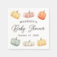 Add a festive touch to your celebration with these gender-neutral baby shower napkins featuring watercolor pumpkins in soft autumn hues of orange, yellow, sage green, cream, and dusty rose. “Baby Shower” is displayed in elegant handwritten script at the center, with the mother-to-be’s name and shower date shown below. Pumpkins accent the top and bottom of the design, creating a warm seasonal look that’s perfect for fall baby showers.