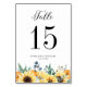 Rustic Watercolor Pumpkins and Sunflowers Wedding Table Number