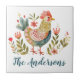 Rustic Watercolor Rooster Kitchen Decor Ceramic Tile