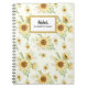 Modern cute girly, colorful rustic and whimsical Notebook featuring watercolor sunflowers pattern in light green background and modern calligraphy. This will be a perfect feminine accent for your office and perfect as personized gift.