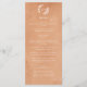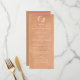 This stylish wedding menu features a peach and clay watercolor background with white text. It has space for the couple's initials inside of two hand drawn branches. It's the ideal menu for a fall wedding.