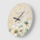 Rustic Watercolor White Ranunculus Large Clock