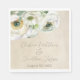 These vintage style romantic floral napkins feature a rustic parchment paper design background that resembles an old vintage book, with watercolor ranunculus flowers. A delicate bouquet of ranunculus and greenery is pictured on the top. Sample names of a newlywed couple and wedding date are printed below. You can personalize the napkins to include your own custom names or text.