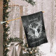 Welcome the season with this Rustic Watercolor Whtie Reindeer House Flag, a charming addition to your Christmas outdoor accents and holiday home decor. This vibrant flag showcases a country rustic design featuring a watercolor depiction of a white reindeer framed by a delicate filigree wreath, set against a textured weathered wood background. Subtle gray snowflakes enhance the wintry charm, while modern typography displaying "Happiest Holidays" spreads festive cheer. Crafted from durable, weather-resistant fabric, this flag is perfect for enhancing your curb appeal or gifting to loved ones. Elevate your holiday display with this elegant, seasonal essential.
