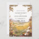 A golden meadow framed with softly painted wildflowers and leafy branches sets a romantic countryside scene, with a distant mountain view and a clear center for your names and details. This watercolor design feels warm and natural for couples planning an outdoor celebration, from a barn ceremony to a garden reception. Personalize the wording in minutes, choose your paper and shape, and create an invitation that feels like sunset in a field just for the two of you.