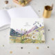 A beautiful watercolor wildflower and mountain wedding design. A unique design that uses watercolor wildflower botanicals and a watercolor mountain landscape in the background. A modern wild floral design with lakeside mountains and rivers. An elegant wedding guest book design with modern elements. Matching wedding invitations and other stationery items are also available.