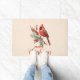 Rustic Watercolor Winter Cardinal Holly Branch Doormat