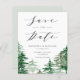 Announce your wedding date with this customizable save the date flat card. It features watercolor trees, elegant script and simple typography. Personalize this forest save the date announcement by adding your wedding details. This woodland save the date card is perfect doe spring weddings and winter weddings.