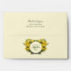 This design features rustic yellow wattle acacia flowers native to Australia. The Australian yellow wattle flowers wreath frame the wedding date. The yellow tones of the wattle flowers and its greenery create a rustic floral country garden bush feel. Rustic wedding invitation envelope design with return address. Matching wedding invitations and other stationery items are also available.
