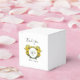 This design features rustic yellow wattle acacia flowers native to Australia. The Australian yellow wattle flowers wreath frame the wedding date. The yellow tones of the wattle flowers and its greenery create a rustic floral country garden bush feel. Rustic wedding favor box design with modern elements. Matching wedding invitations and other stationery items are also available.