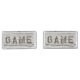 Rustic, weathered wood sign with the word "Game" carved into it.