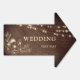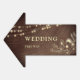 Guide your guests with this elegant rustic wood arrow sign featuring glowing string lights and gold floral details. Perfect directional signage for ceremony, reception, or outdoor wedding path.