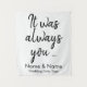 custom wedding backdrop for reception, wedding reception calligraphy back drop, wedding photo booth tapestry backdrop, wedding reception banner, it was always you, custom wedding backdrop for ceremony, wedding photobooth rustic wedding decor, engagement party bridal shower banner, wedding head table couple backdrop, personalized names wedding back drop