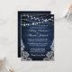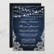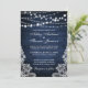 Rustic Wedding Blue Wood String Lights Lace Invite