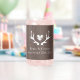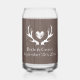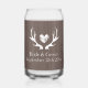 Rustic wedding glass with dear antler heart logo. Personalize with name of bride and groom plus date of marriage. Cool vintage design for country or hunting themed marriage.