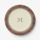 Rustic Wedding Heart Monogram in DarkWalnut Circle Paper Plates