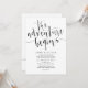 Plain white envelopes are included with paper invitations and will come to fit the invitation size you select. If you don’t need the envelopes, you may choose to not receive them by selecting the dropdown below "Envelopes" and choosing "None." If you’d like to have a design on your envelopes, you can browse all of these available envelopes to find the design that complements your Rustic Wedding Invitation The Adventure Begins.