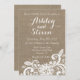 Plain white envelopes are included with paper invitations and will come to fit the invitation size you select. If you don’t need the envelopes, you may choose to not receive them by selecting the dropdown below "Envelopes" and choosing "None." If you’d like to have a design on your envelopes, you can browse all of these available envelopes to find the design that complements your Rustic Wedding Invitation With Lace Over Burlap.