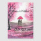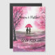 Rustic wedding love couple cherry blossoms tree artwork magnetic card. Wedding anniversary. Romantic couple, bride and groom, first date, first love. Pink cherry blossoms flowers tree. Home decor. Girly chic decor.