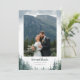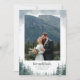 This pine tree wedding thank you card features a playful modern font and rich watercolor evergreens against a white page. Add your own photo!