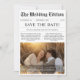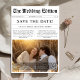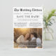 Share your love story creatively and rustically with this black-and-white newspaper-style save-the-date. Featuring a romantic photo set against tall golden grass, it's perfect for couples who love that cozy boho vibe. With a QR code for easy guest access, it blends vintage charm with modern convenience. Whether you're planning a western-themed wedding or want something fun, affordable, and full of personality, this card is a stylish way to say, "We're getting married!