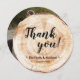 Introducing our Rustic Wedding Photo Thank You Script Template, the perfect way to create a unique and memorable thank you card for your wedding guests. This round card features an imitation wood cut tree bark design, with a printed wood grain effect that adds a rustic and charming feel to the cards.