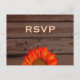 Rustic wedding RSVP postcards with orange sunflower and customizable text