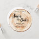 As your guests receive this charming save the date invitation, they will be captivated by its unique round shape and wood-inspired design, making it a beautiful keepsake that they will cherish as a memento of your wedding day.
