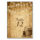 Rustic wedding table number for a Country Wedding with string lights, cowboy boots and barrel.