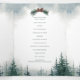 This trifold wedding program features a playful modern font and rich watercolor evergreens against a white page with a blue sky. Perfect for a rustic wedding or any special occasion.