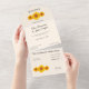 This Romantic & Rustic All-in-One Wedding Invitation artfully combines timeless charm with countryside elegance. Set against a warm cream (#FDF3E7) background and adorned with a delicate trio of sunflower illustrations by Alma Wad, it evokes a serene blend of romance and nature’s grace. The design pairs flowing cursive script with classic serif typography, striking the perfect harmony between whimsy and tradition.