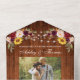 Rustic Wedding, Watercolor Burgundy Floral, Wood and String Lights Photo Wedding All In One Invitation with RSVP Card includes burgundy roses, pink roses, red roses, sunflowers and botanical greenery.