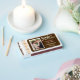 Celebrate your wedding, bachelorette party, bridal shower, or other fun event with these personalized match boxes. This design has a rustic theme with a dark wood grain and slightly distressed-style text in white and dusty rose-pink. Use the easy templates to add your photo. The text fields currently include space for the married couple's names, plus the wedding location and date and the words, "Sparks are flying." If you want to change the fonts or alter all the text, you can also "customize further."