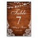 Rustic Wedding Wood String Lights Lace Table Number