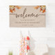 This elegant wedding banner features hand-painted watercolor burnt orange and terracotta leaves, cream and beige dahlias, and beautiful rust-colored roses on a taupe background with brown text. Find matching items in the Taupe Autumn Romance Collection.