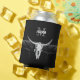 This rustic bull skull country western cowboy monogram beer can cooler has a black and white farmhouse inspired design with a wild west style art. Cool, trendy, modern vintage farm animal drink holder. Image copyright Marg Seregelyi Photography.