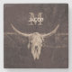 Rustic Western Brown Beige Old Bull Skull Monogram Stone Coaster