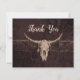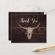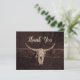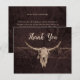Say Thank You with this budget friendly flat card which features a rustic brown texture bull cow skull western country rodeo cowboy wedding theme. Farmhouse style, old wild west vintage antique. Cool, trendy, modern farm animal customized design. Image copyright Marg Seregelyi Photography.