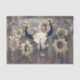 Rustic Western Bull Skull Texture Sunflowers Tissue Paper