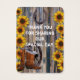 Western wild west cowboy or ranch theme, with chic pretty modern bright colorful yellow sunflower floral flower and old antique wood textured farm barn door, cowboy boots, stetson hat, wagon wheels and lucky horseshoe, an elegant natural rustic country style spring or summer western ranch or farm themed wedding favor thank you tag, easily personalized with the bride and grooms names to the templates to create your own unique custom thank you or favor tag for your special marriage occasions and celebrations. Visit the PERSONALIZED_ WEDDINGS STORE for matching coordinated wedding sets.