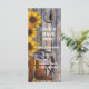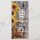 Western wild west ranch or cowboy theme, sophisticated pretty yellow sunflower floral flower and old distressed wood textured wooden farm barn door, with cowboy boots horse shoe and wagon wheel graphics, a modern elegant luxury rustic country style spring or summer themed wedding program church announcement which can be easily personalized with the bride and grooms names and text to the templates to create your own simple feminine girly natural or western themed marriage program for your special occasions and celebrations. Visit the PERSONALIZED_ WEDDINGS STORE for matching coordinated wedding suite sets.