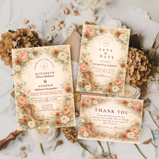 Rustic Western Floral Arch Wedding Invitation
