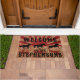 Your husband will love this funny doormat by JessicaAmber. Features a welcome greeting with your family last name, in a classic Western font. Also features black silhouettes of horses, casting red shadows from the red rising sun. The background has a brown faux carpet or coir texture You can customise the text as needed, as well as replacing the background photo. ⭐ For more rustic homewares, visit my store Zazzle.com/JessicaAmberArtist ⭐ For custom orders, contact me via Zazzle messaging
