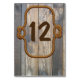 Western theme wedding reception table number card done in a weathered wood fence looking background. Graphics of a brown rope tied with knots, in a circle, has a brown table number in the middle. Personalize the number for each table at your reception.