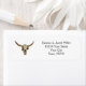 Western country cowboy brown wood wedding save the date return address labels. Rustic country bull skull. Farmhouse style design. Personalize your typography. Wild west antique vintage unique. Cool, old, trendy farm animal. Image copyright Marg Seregelyi Photography.